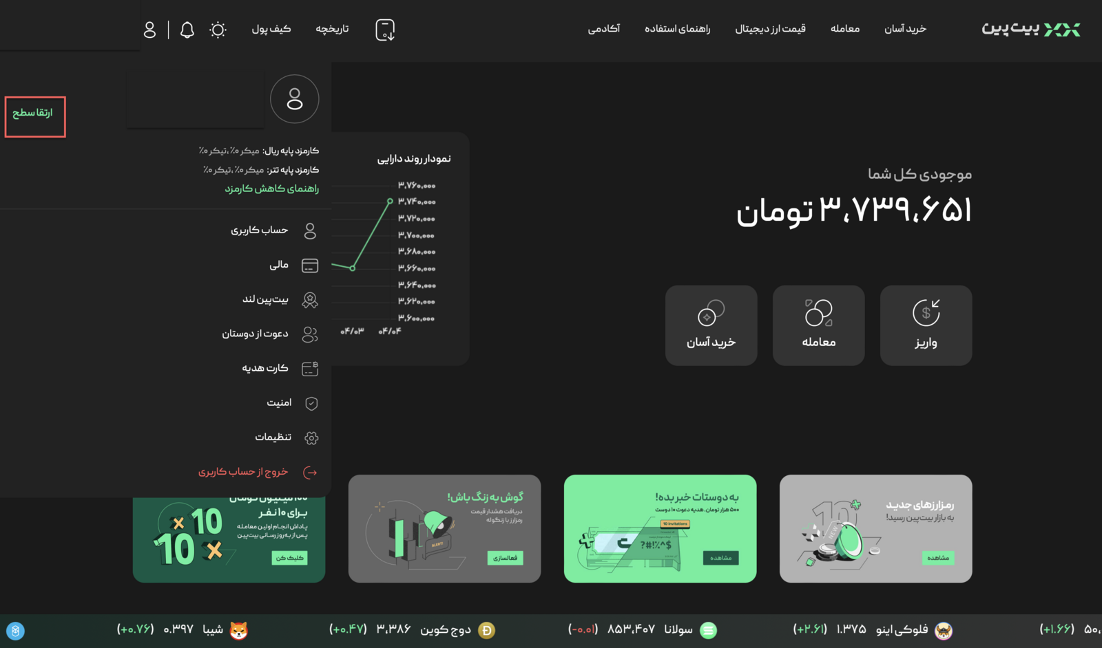 پس از ثبتنام در بیتپین، حساب کاربری شما در سطح صفر یا سطح ثبتنامشده قرار دارد که برای استفاده از همه امکانات بیتپین، بهتر است سطح حساب کاربری خود را ابتدا به سطح پایه و سپس پیشرفته ارتقا دهید.