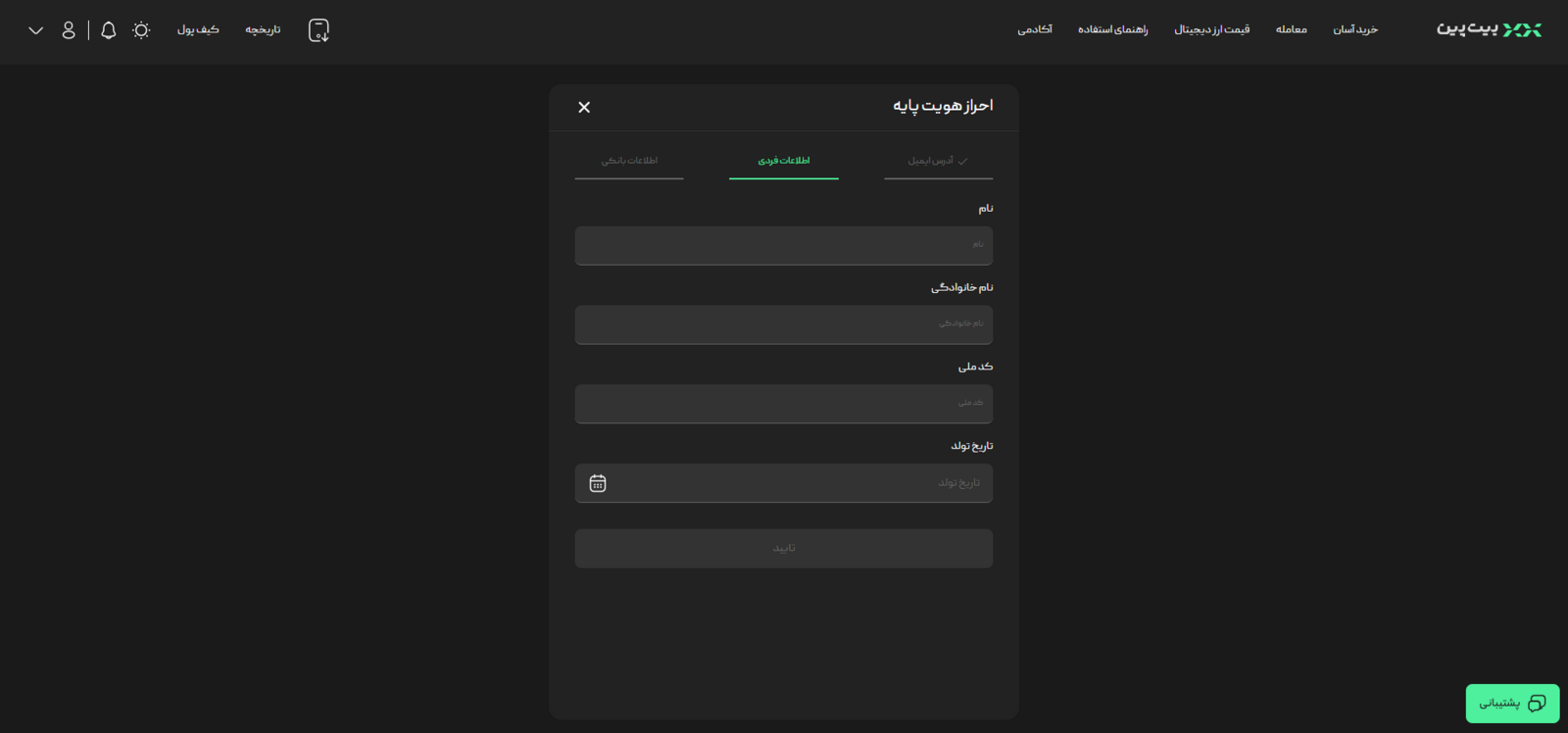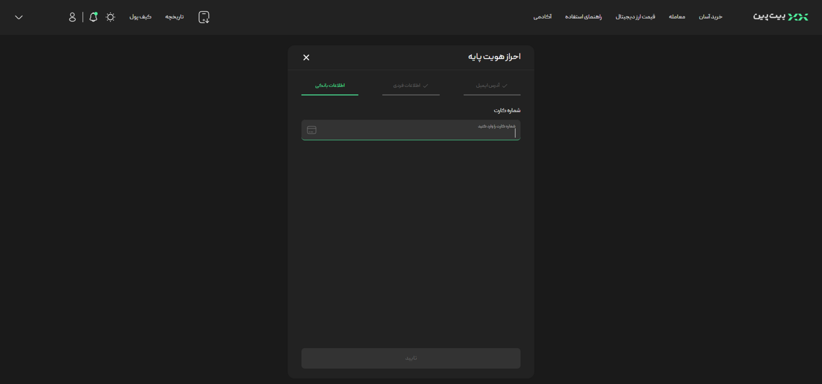 با زدن دکمه تایید، احراز هویت سطح پایه شما انجام شده و میتوانید در ادامه حساب کاربری خود را به سطح پیشرفته ارتقا دهید.