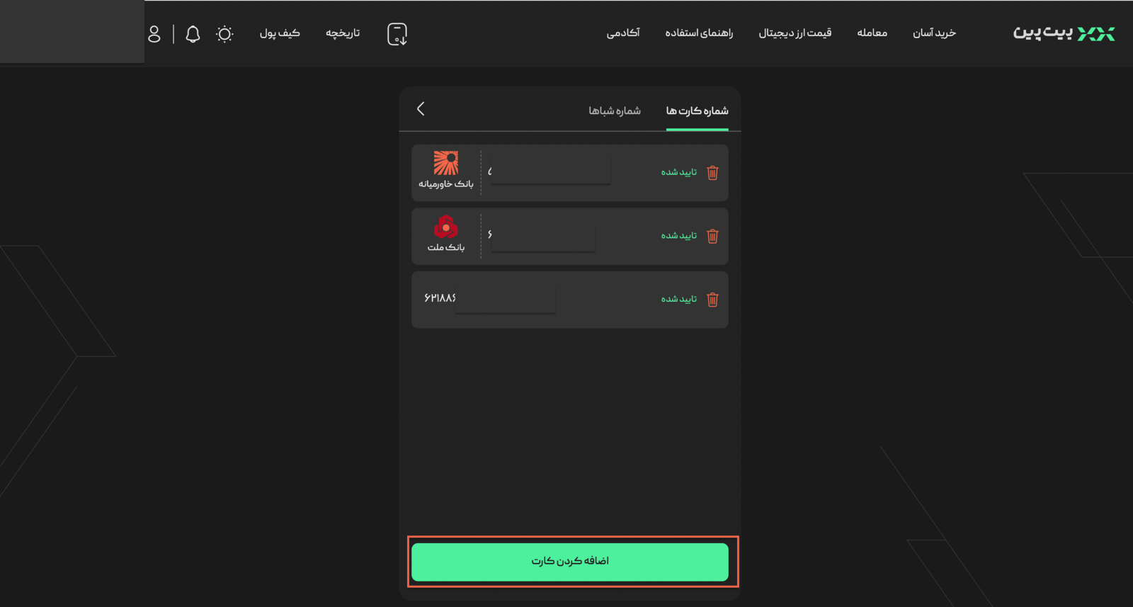 چگونه در بیتپین شماره کارت بانکی اضافه کنیم؟