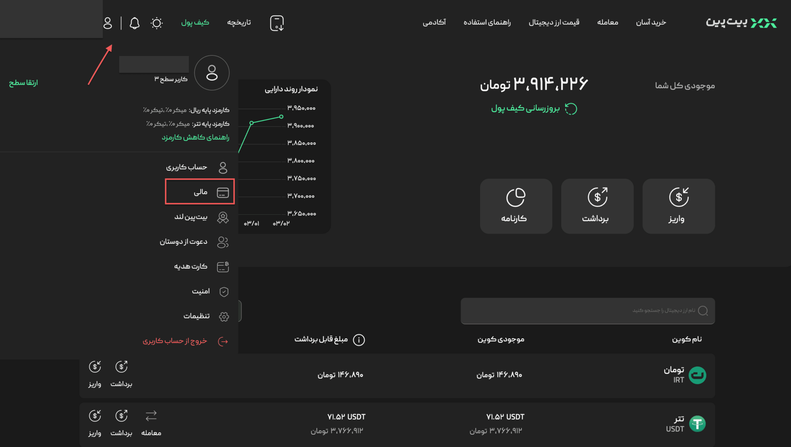 برای اضافه کردن کارت بانکی جدید، ابتدا وارد بخش مالی از حساب کاربری خود شود.
